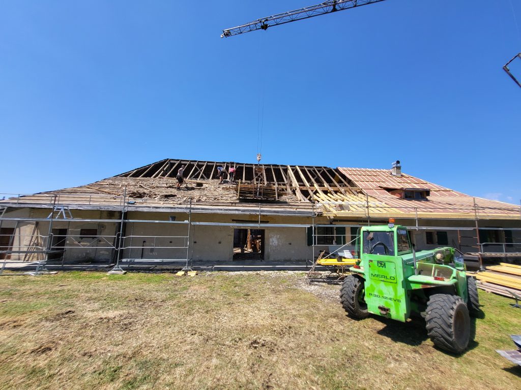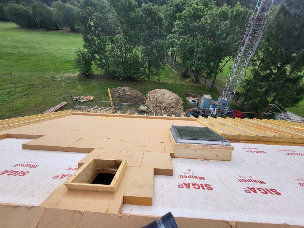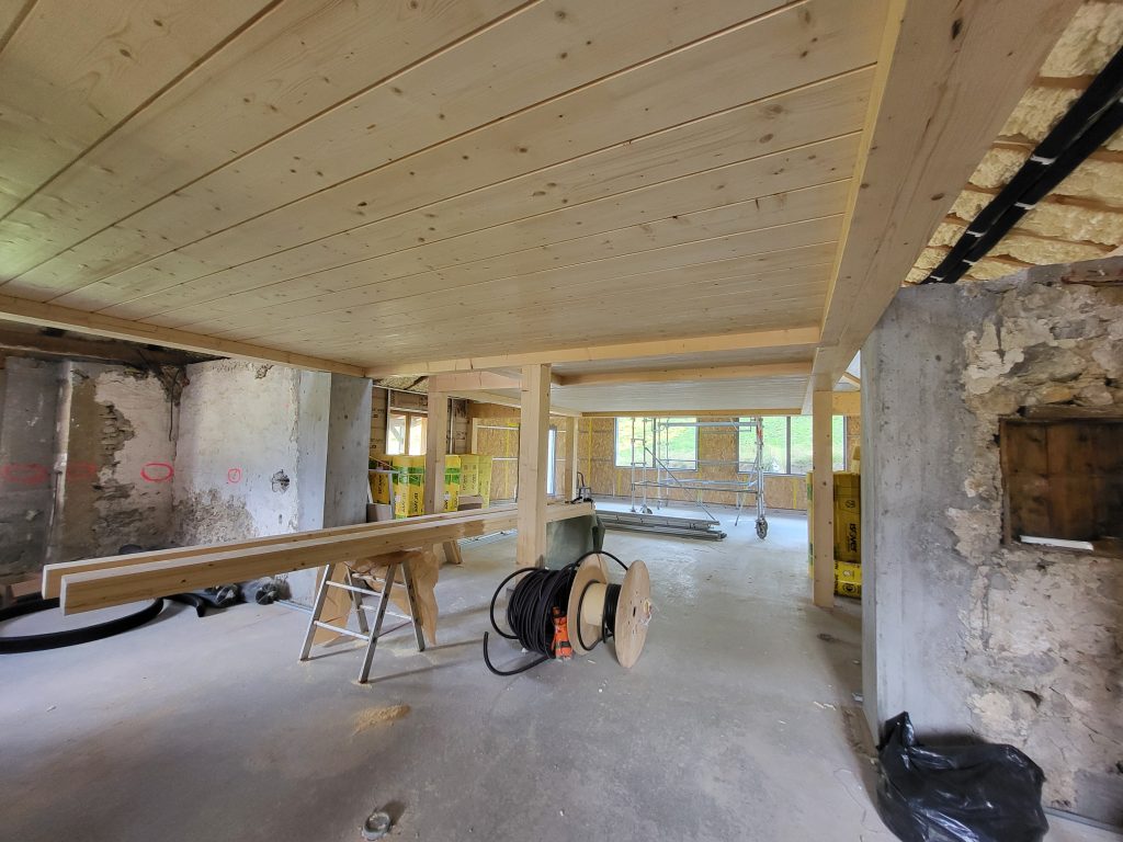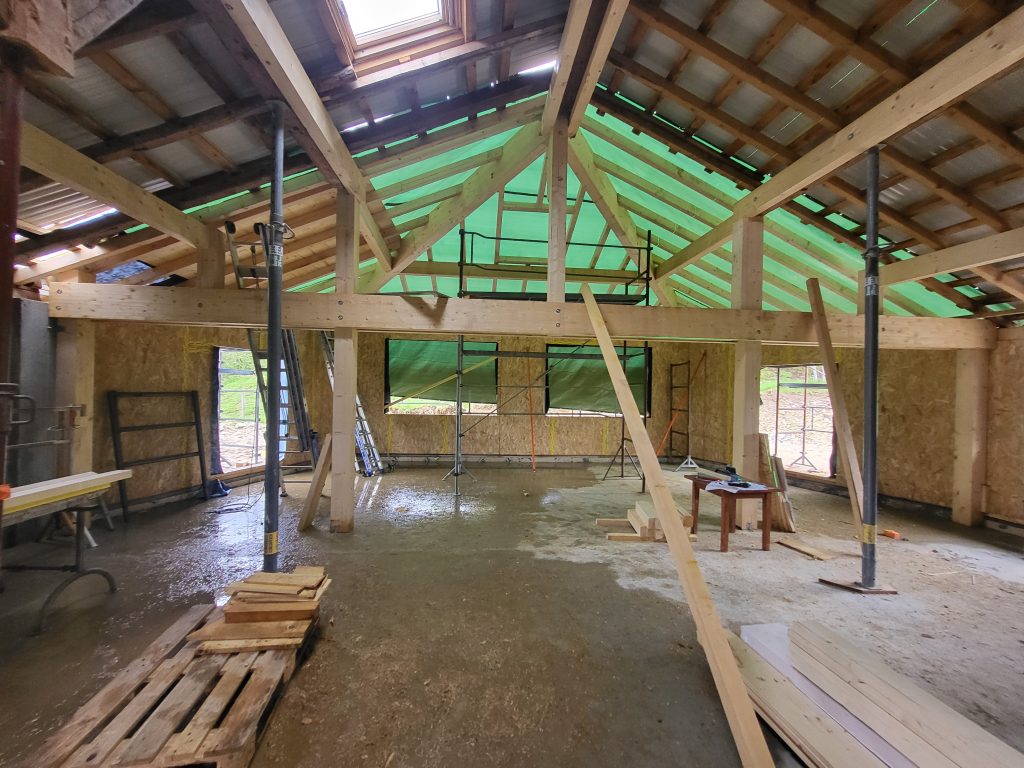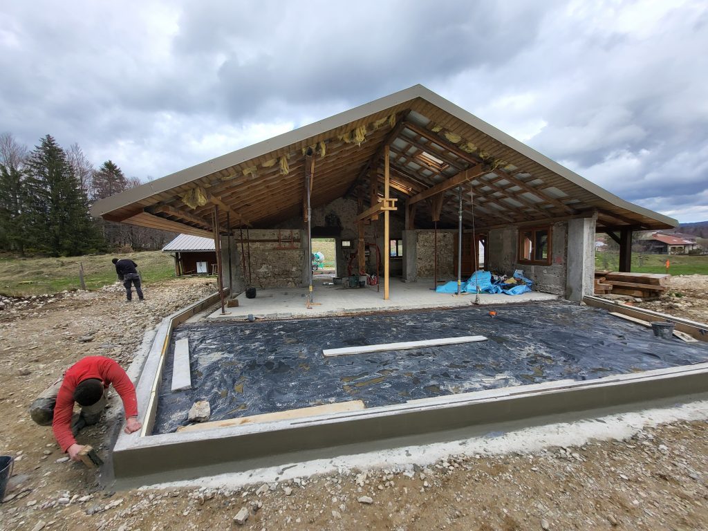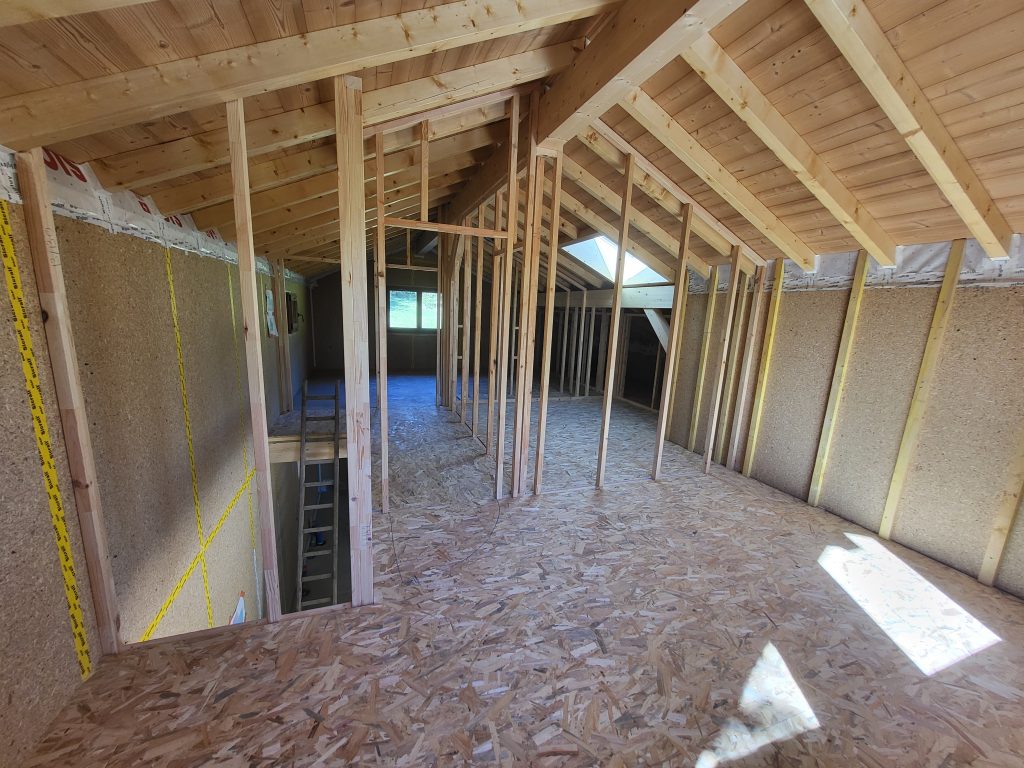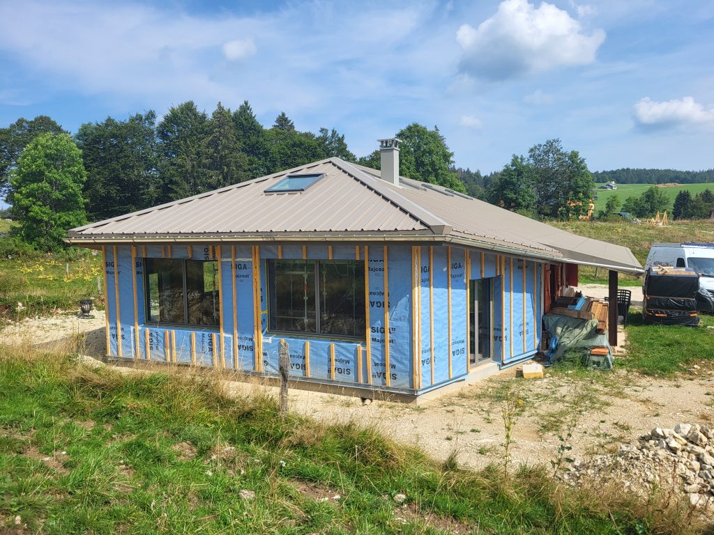 Rénovation d’une ancienne ferme jurassienne, avec réalisation des velux, solivage, isolation de la toiture et parements bois intérieur