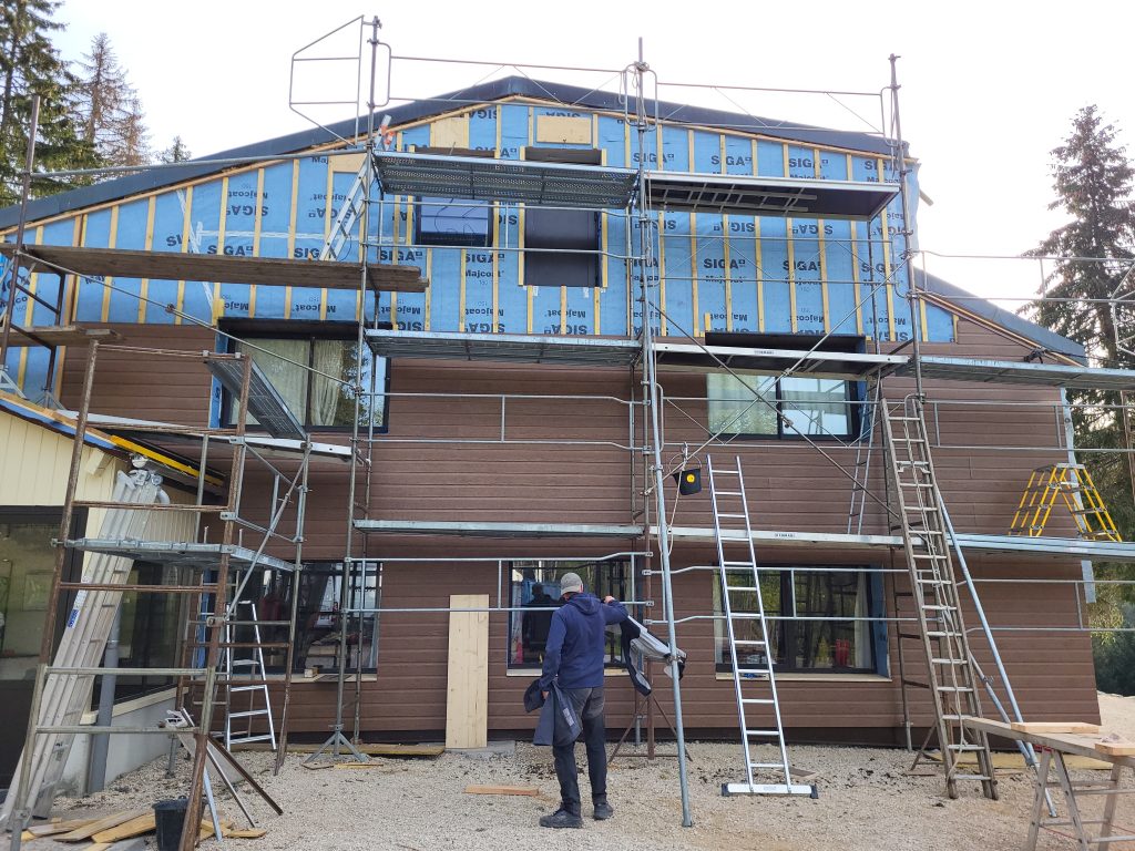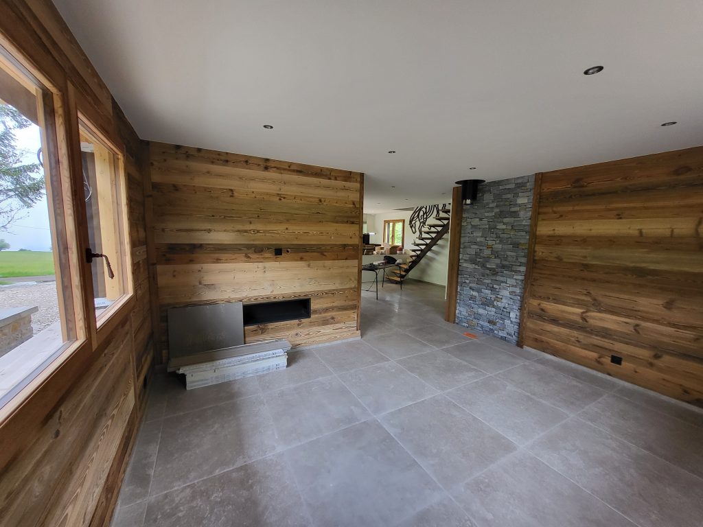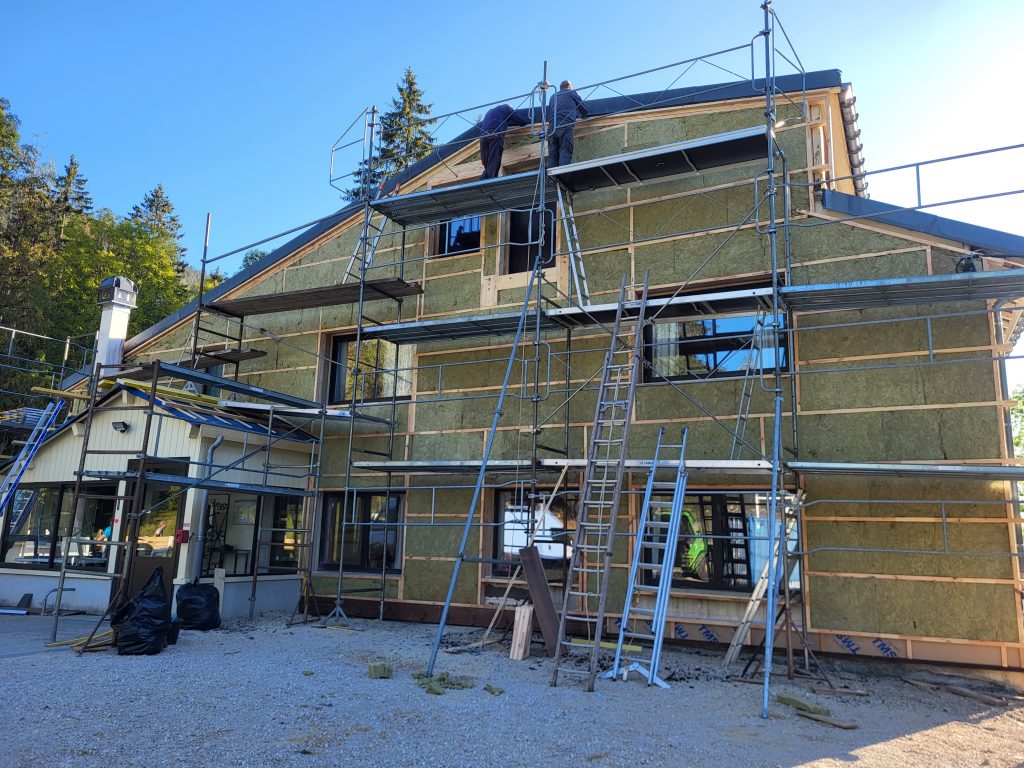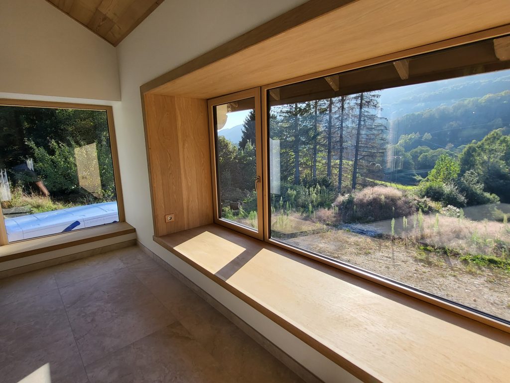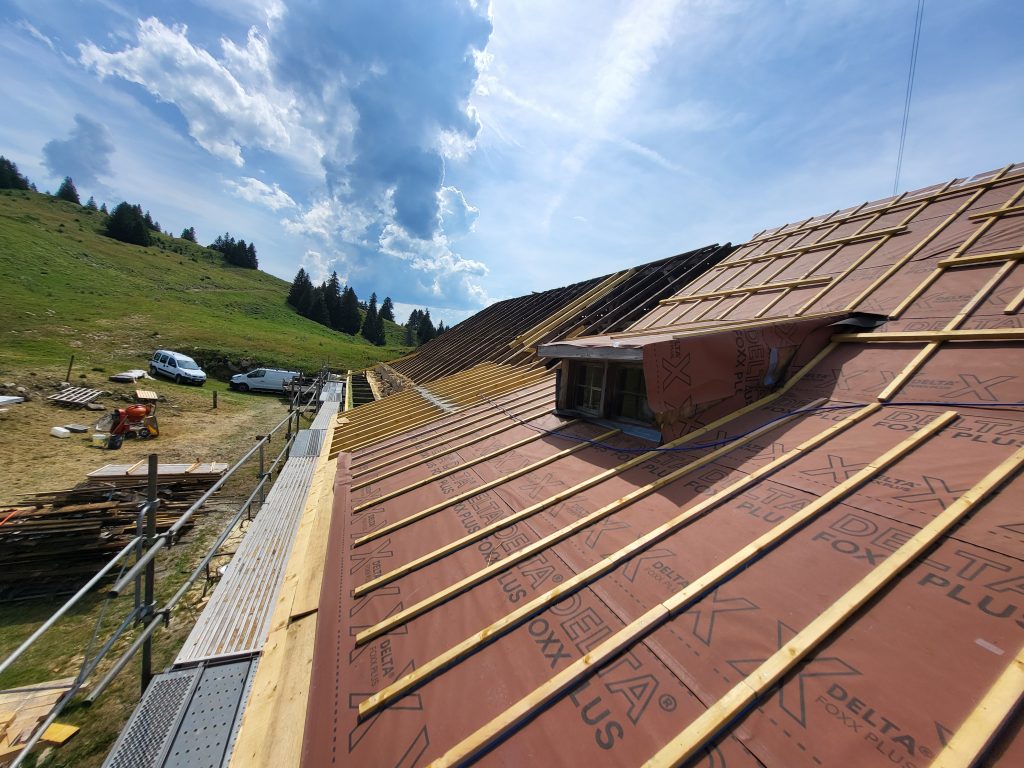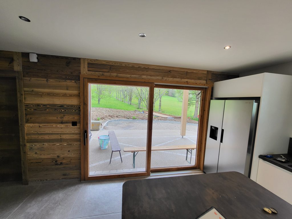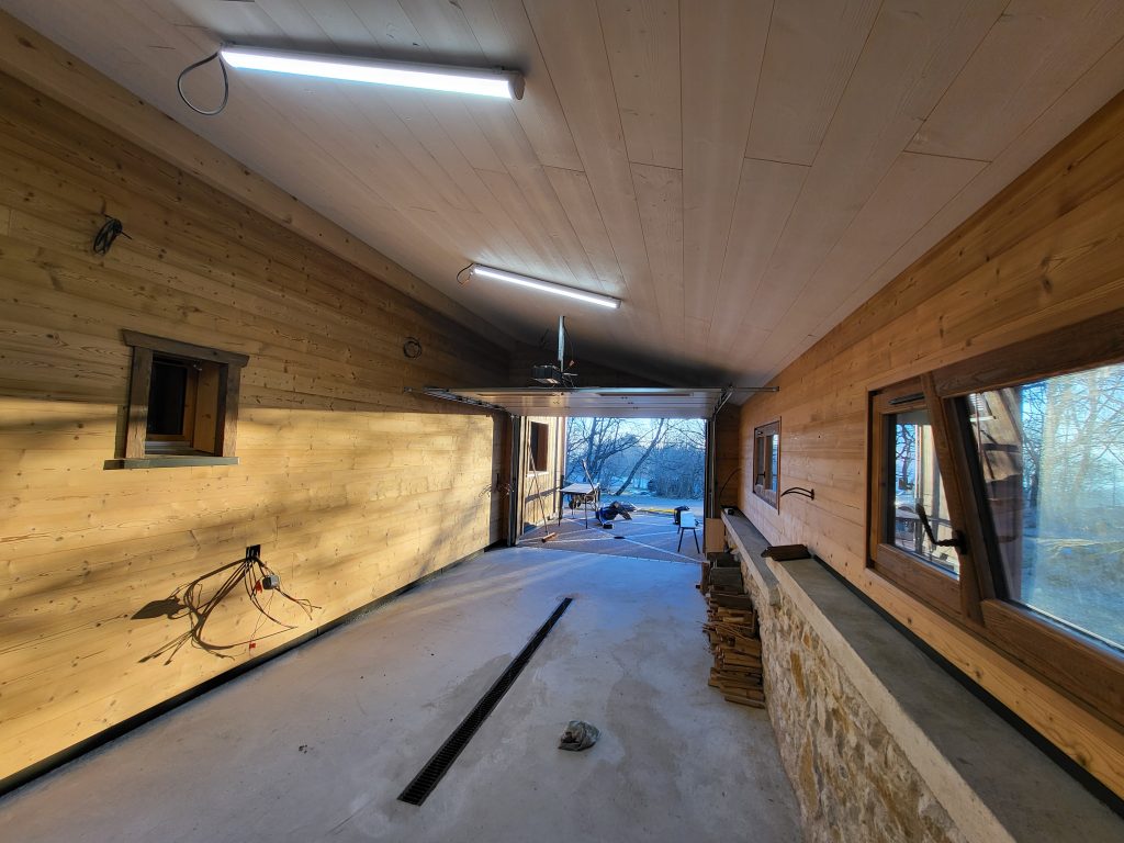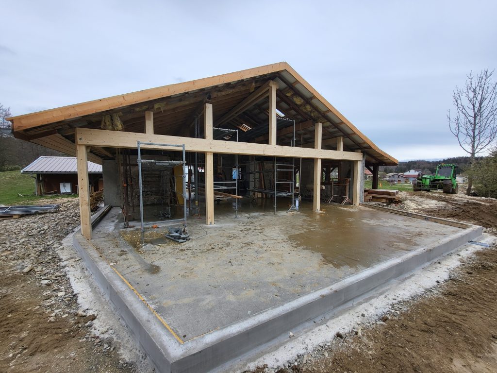 Rénovation d’une ancienne ferme jurassienne, avec réalisation des velux, solivage, isolation de la toiture et parements bois intérieur