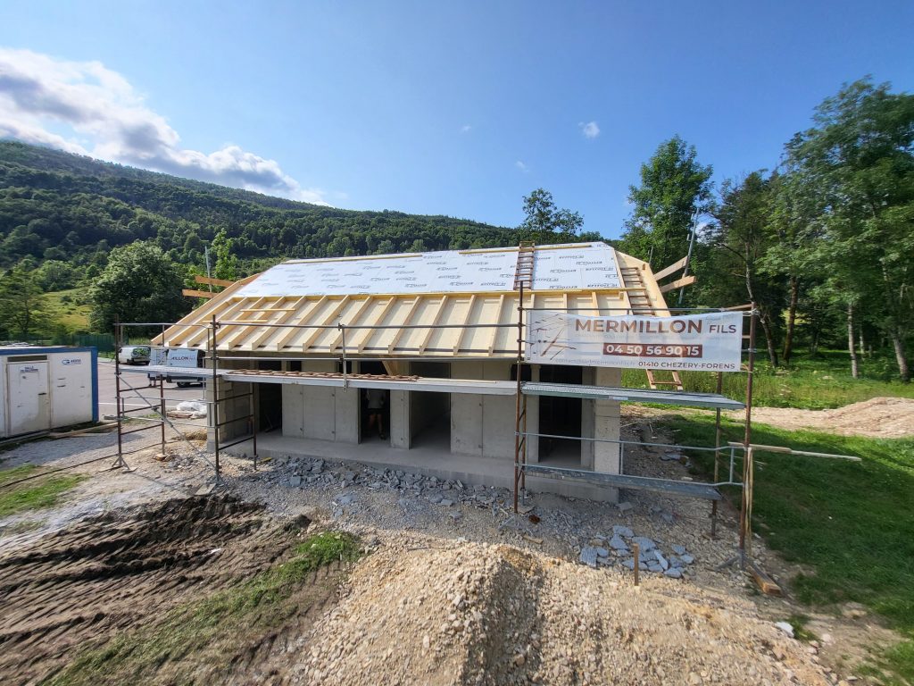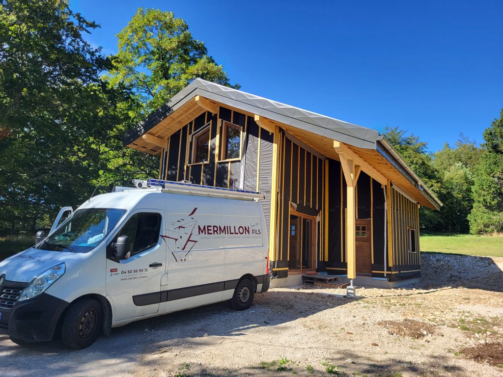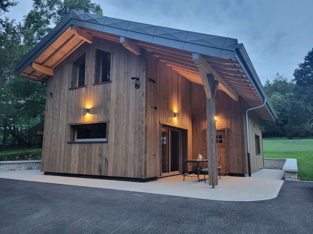 Ossature bois complète (toiture, menuiserie intérieure et extérieure, sols et bardage intérieur et extérieur)