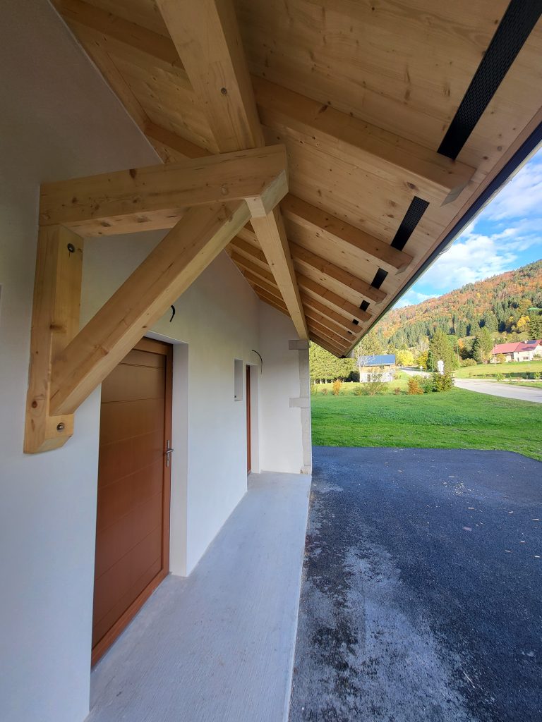 Extension d’une maison avec charpente apparente et isolation par l’extérieur